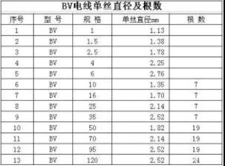【线缆百科】BV、BVR电线多芯股数及单丝直径