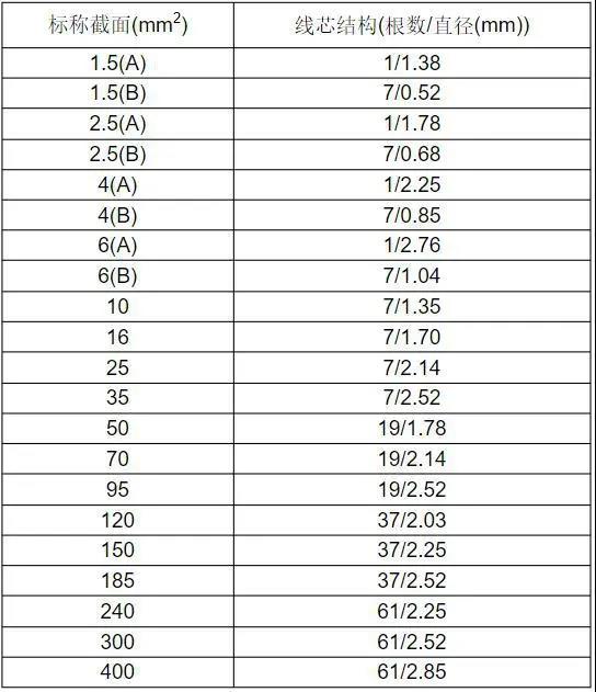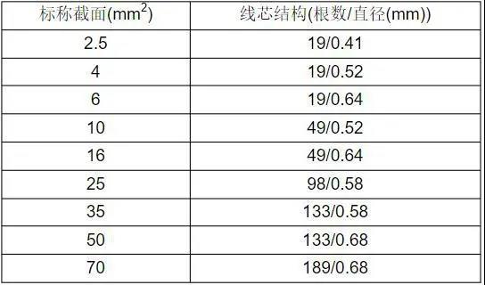 1-6平方均为单芯直径,10平方以上为多芯。